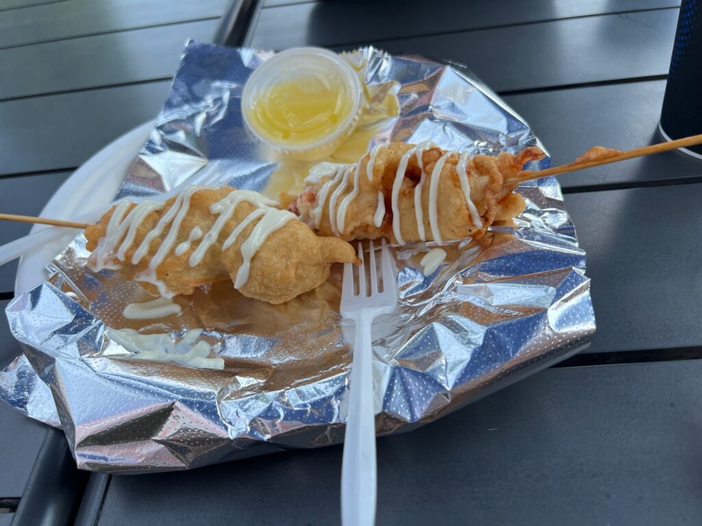Two classic roll options—hot with butter and cold with mayo. We couldn’t choose a favorite! But the real star was the clam chowder—easily one of the best we’ve ever had.